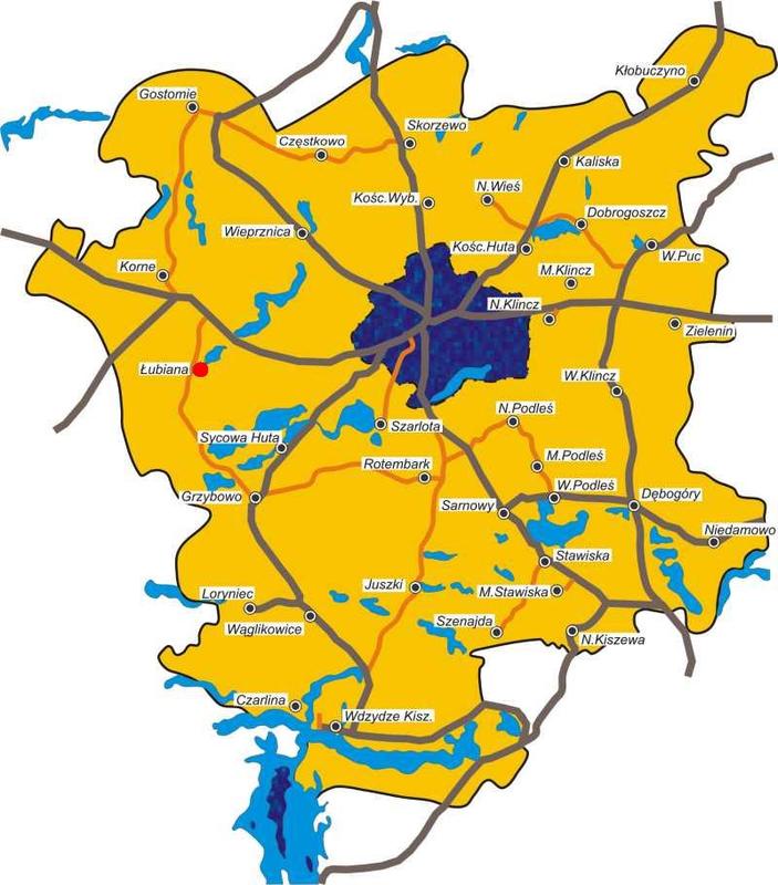 Łubiana to malownicza wieś położona na Równinie Charzykowskiej, wchodzącej w skład Pojezierza Pomorskiego. Jest to zachodnia część gminy Kościerzyna, leżąca w powiecie kościerskim, w krainie zwanej Szwajcarią Kaszubską. Bogactwem okolicy jest krajobraz, malownicze wzgórza, liczne jeziora i rzeki oraz tysiące hektarów lasów, łąk i pól. Przez wieś przebiega siedmiokilometrowa rynna jeziora Garczyn (jeziora Wieprznickie, Garczyn, Graniczne). Występują również liczne zagłębienia bezodpływowe (jeziora Wielkie Płocice, Małe Płocice, Czarne).